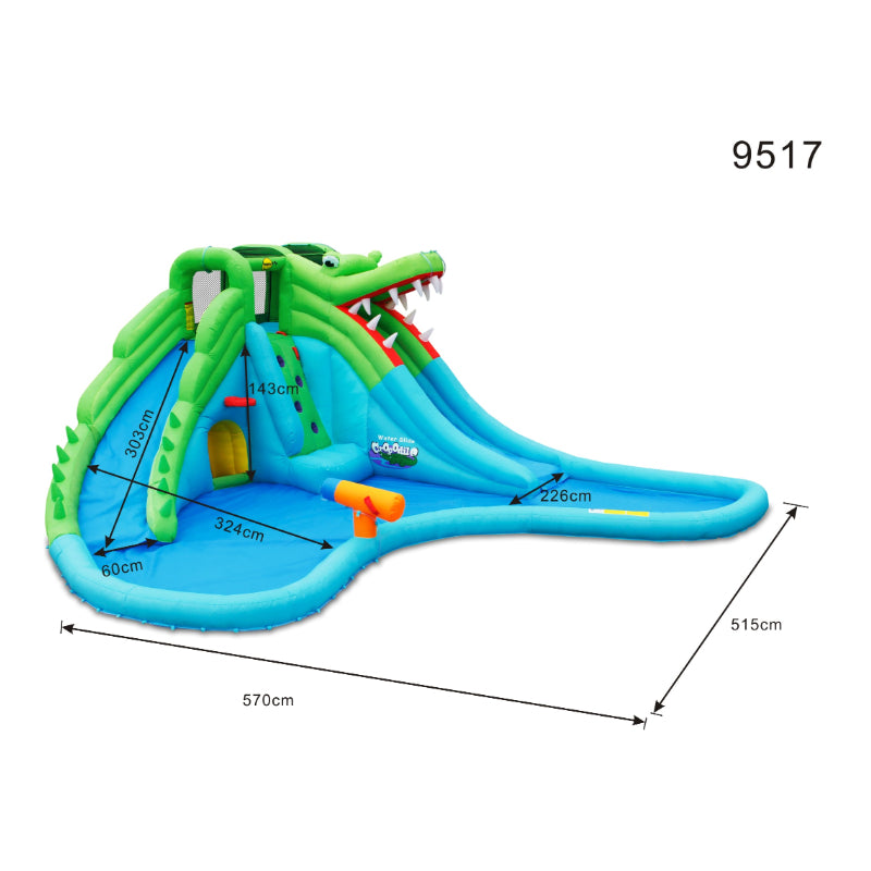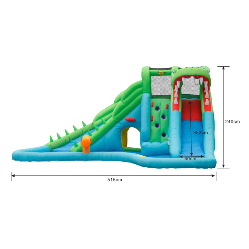 Nothing says fun like the Crickey Crocodile Wet and Dry Water Slide! The kids will love sliding down the 2 big inflatable water slides and there's also a built-in splash pool, sprayers along the crocodile tail and a climbing wall. Plus, with the wet and dry feature, kids can enjoy their crikey crocodile all year long.