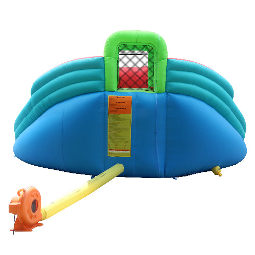 Get ready for ROAR-some summer fun! The Dinosaur Dual Slide Splash Park by Happy Hop brings thrilling backyard play to life with a huge dinosaur-themed design that kids will love. Featuring two large slides, a climbing wall, and a spacious splash zone, this inflatable water park is perfect for active play and endless outdoor excitement. Kids can climb up, slide down into the inflatable pool area, and enjoy imaginative play inside the friendly dinosaur’s mouth!