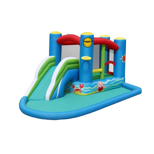 Like all our Happy Hop range it is constructed with a heavy duty 3 layered PVC material on the high traffic areas (Climb area and Slide). Unlike many other products on the market this helps to ensure years of entertainment for the little ones. Trust Happy Hop.