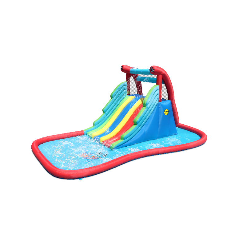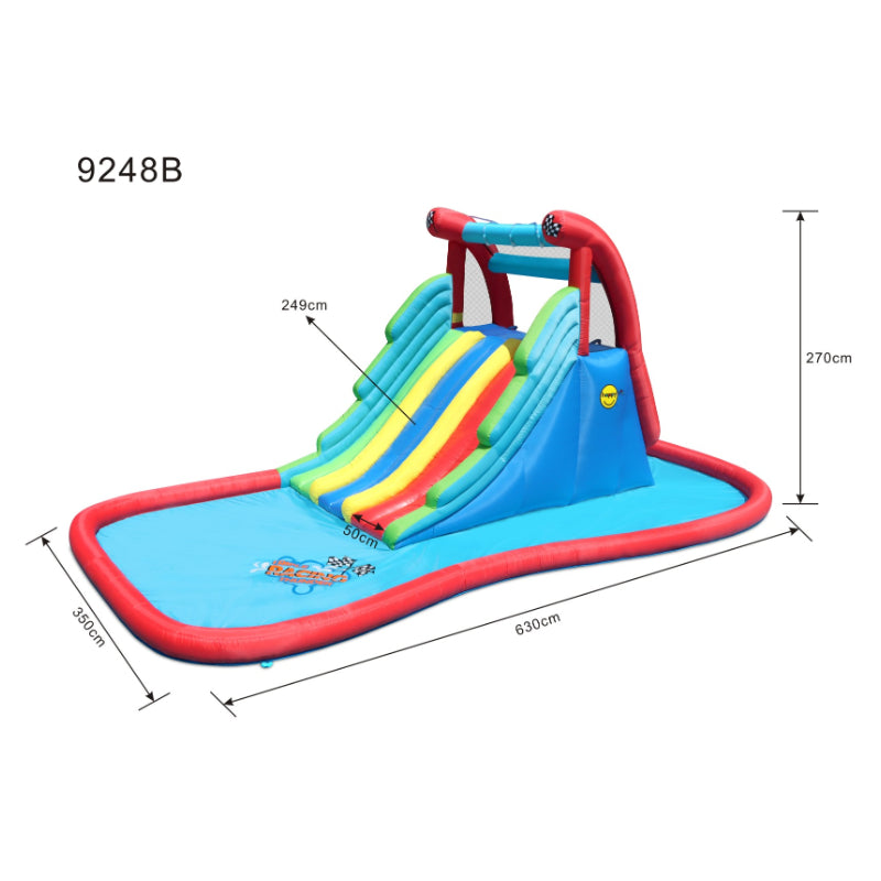 Get ready for non-stop fun with the Triple Racing Thunder inflatable! Featuring three thrilling water slides, this Happy Hop masterpiece delivers endless wet and dry backyard fun for kids. Safe, durable, and action-packed, the Triple Racing Thunder lets children race, slide, and make unforgettable summer memories. Bring the ultimate inflatable adventure home today!